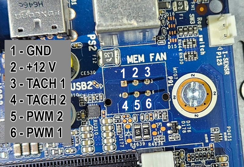 The RAM cooler uses a spcific connector but the pinout has been found 7: